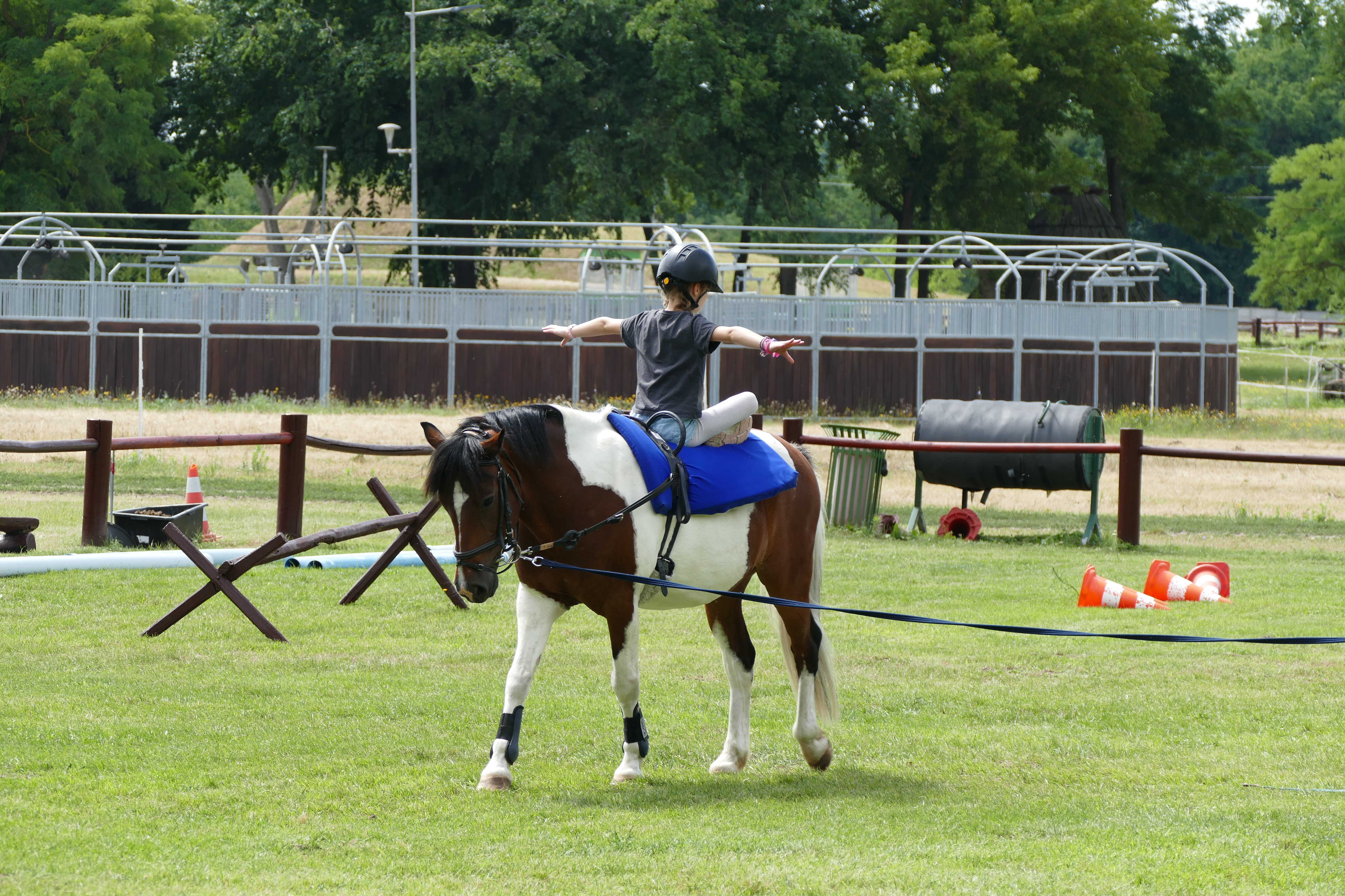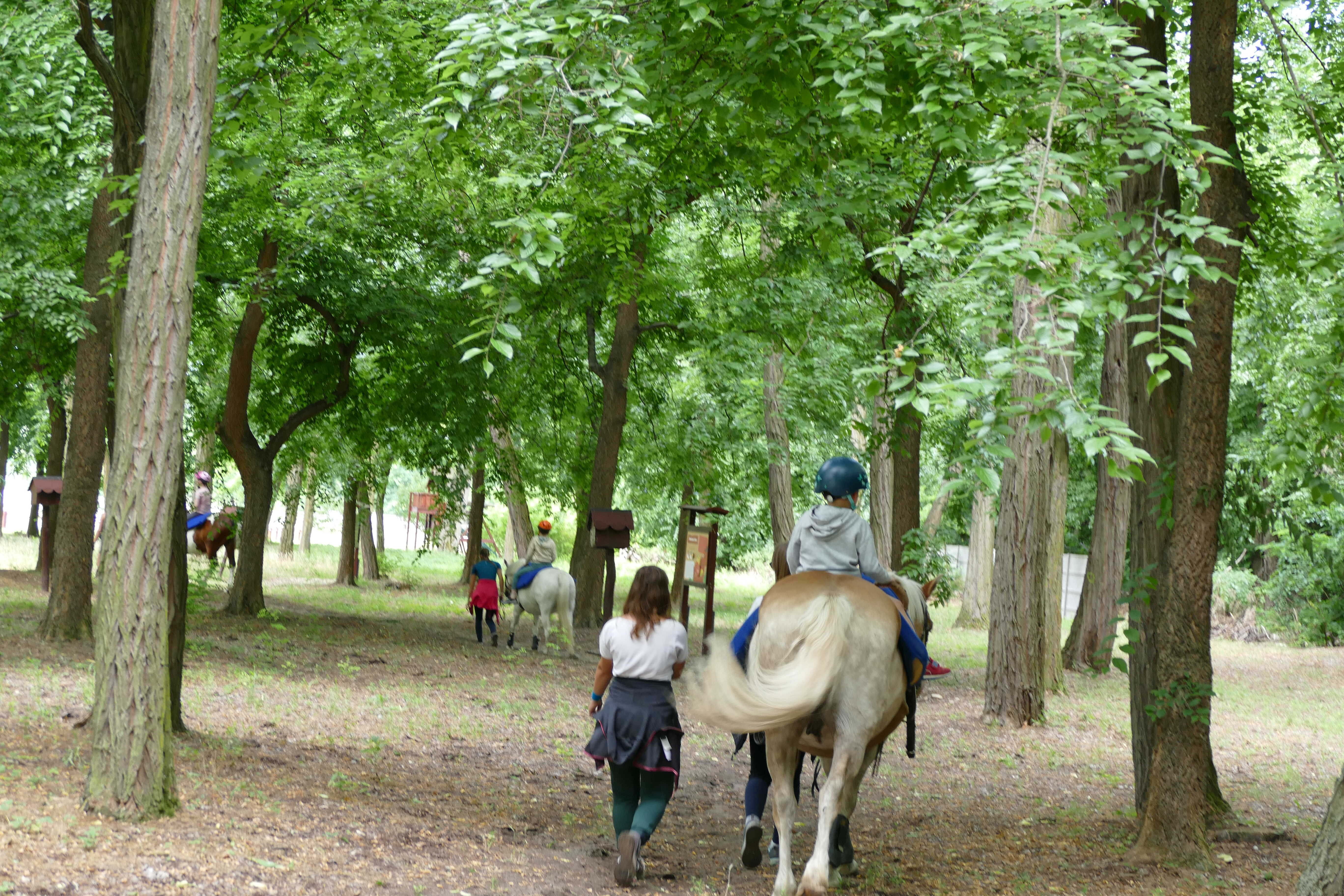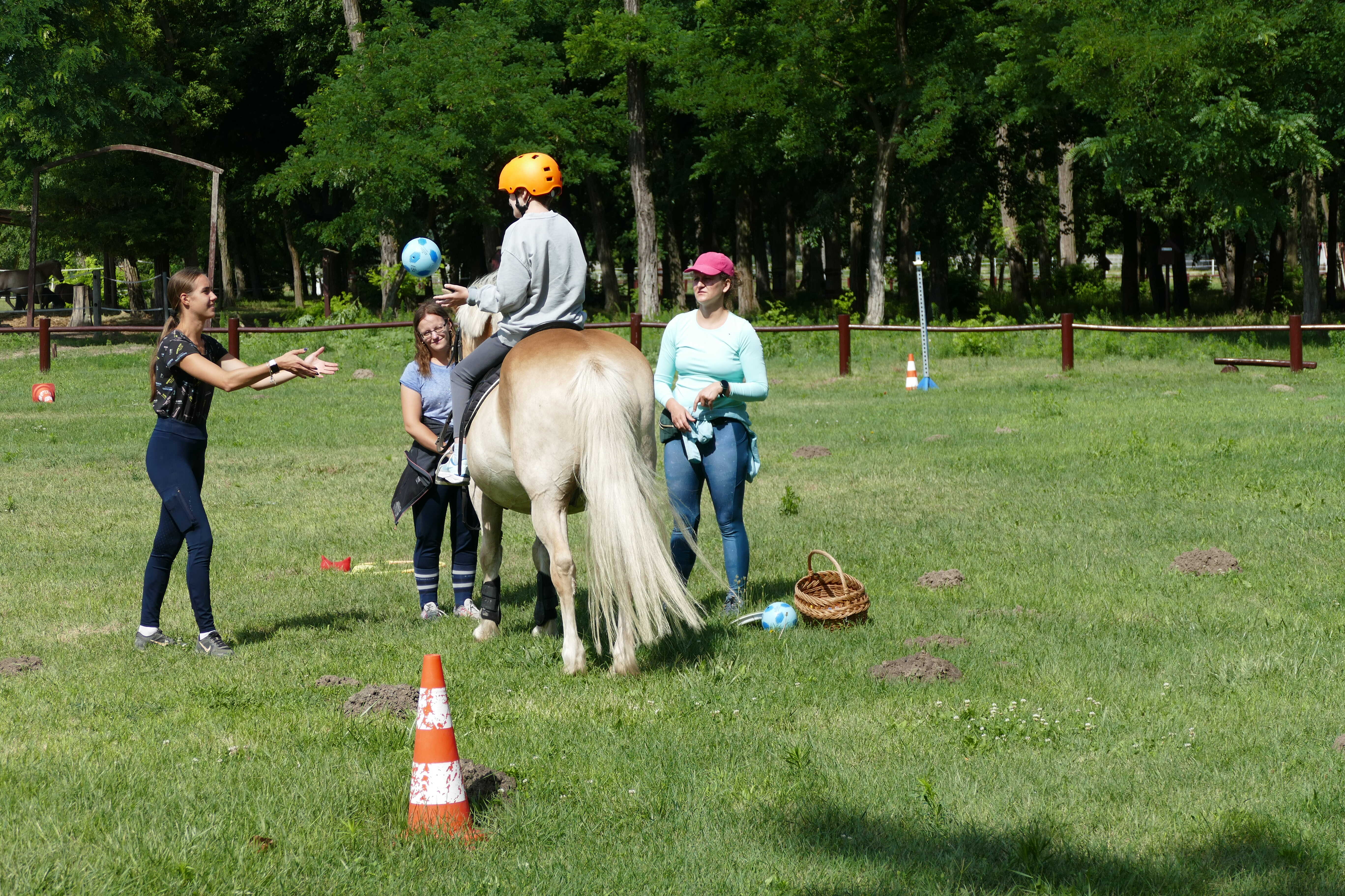 A tábor során a lovak körül végzett ápolási, gondozási feladatok mellett, sok lehetőség nyílt a lovaglásra, a lóháton végzett speciális mozgásfejlesztő gyakorlatokra, gyógypedagógiai lovastorna elemek gyakorlására, de a lovak melletti földi munkához kapcsolódó feladatok megvalósítására is. A lovas program mellett olyan külsős szakembereket is meghívtunk, akik az általuk tartott fejlesztő foglalkozások során segítették a nagymozgások mellett a finommozgások fejlesztését, a cselekvéstervezést, a szerialitás, a ritmus, valamint a testérzékelés, a testtudat és a testséma fejlődését is.