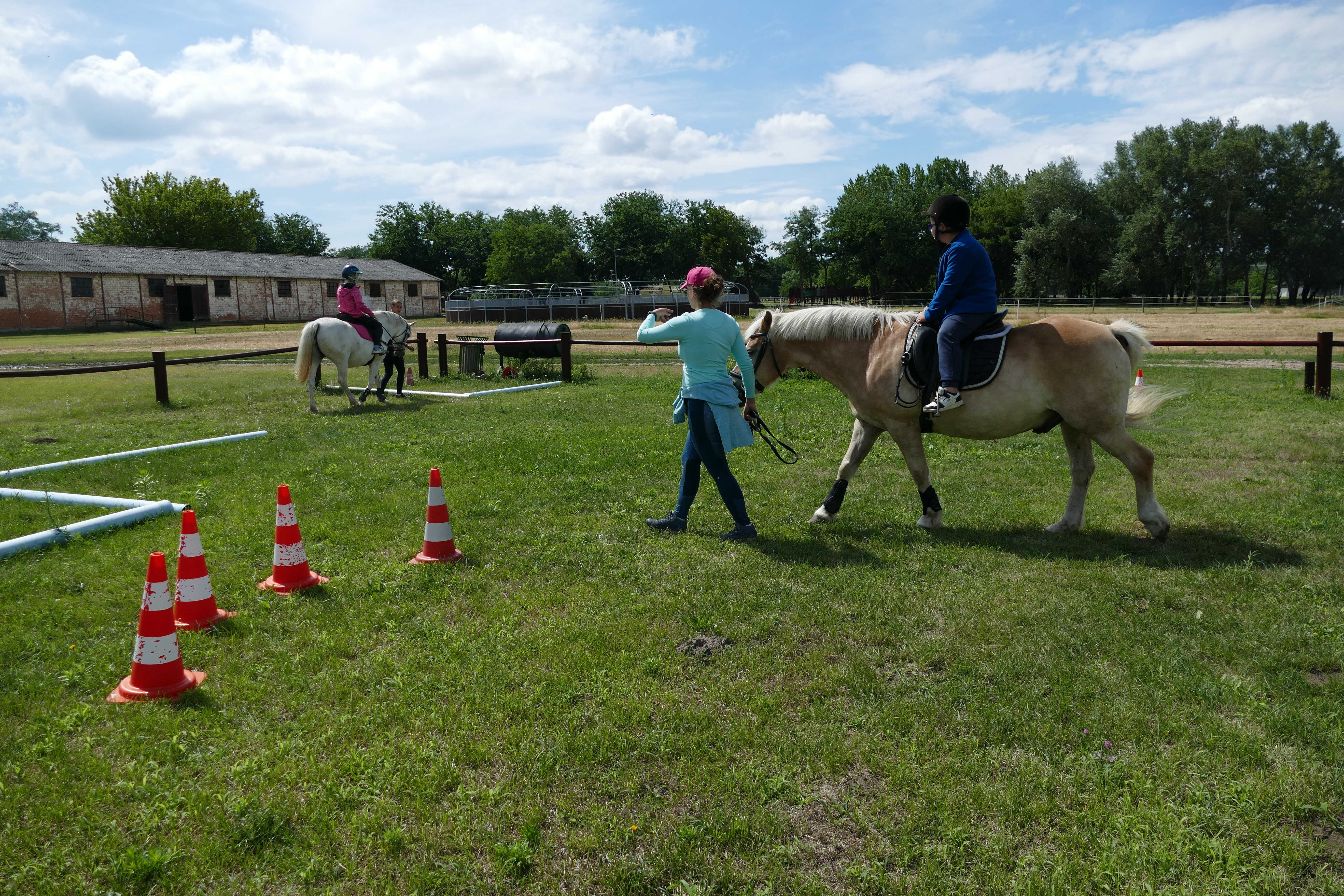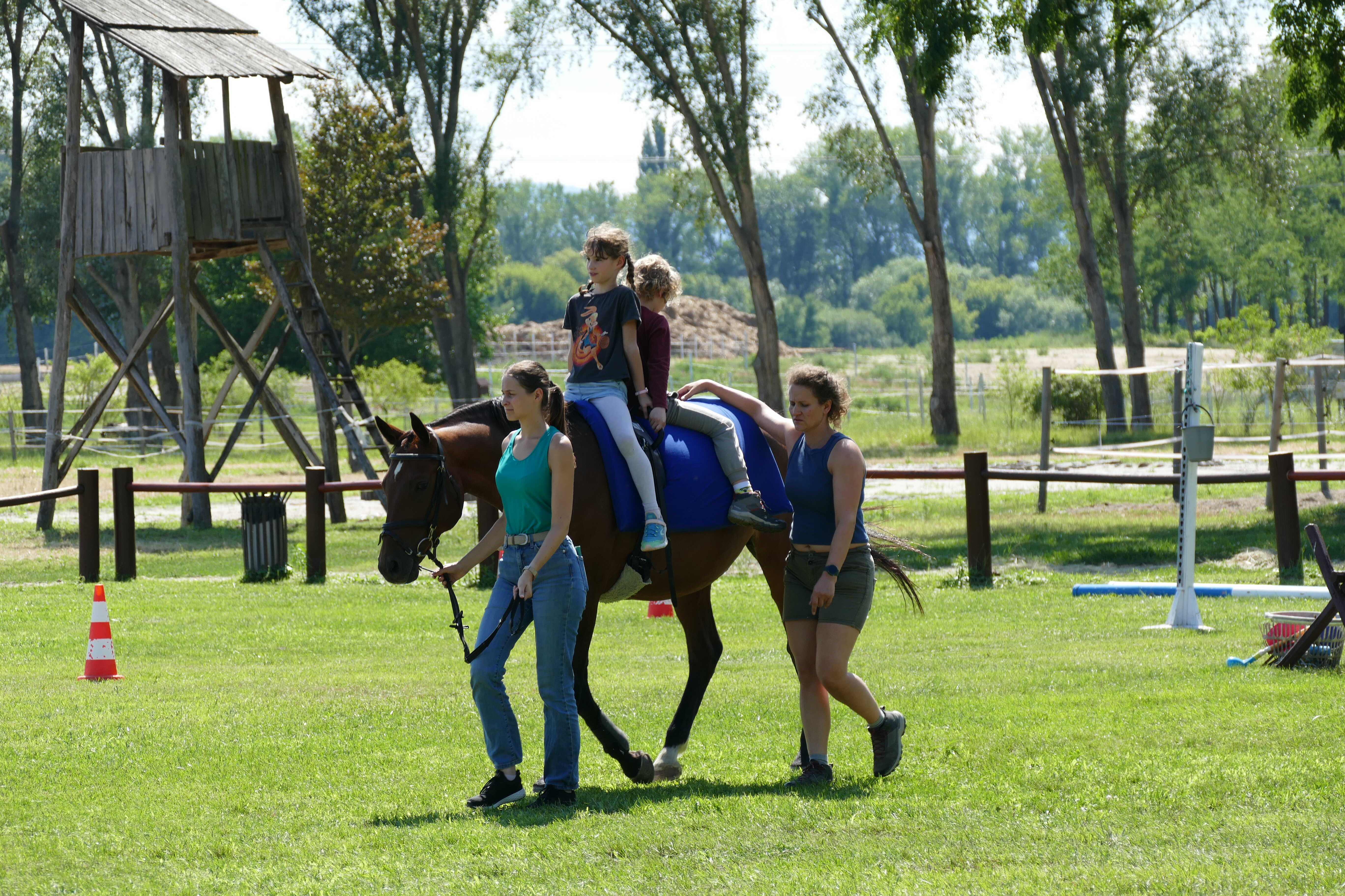 A tábor során a lovak körül végzett ápolási, gondozási feladatok mellett, sok lehetőség nyílt a lovaglásra, a lóháton végzett speciális mozgásfejlesztő gyakorlatokra, gyógypedagógiai lovastorna elemek gyakorlására, de a lovak melletti földi munkához kapcsolódó feladatok megvalósítására is. A lovas program mellett olyan külsős szakembereket is meghívtunk, akik az általuk tartott fejlesztő foglalkozások során segítették a nagymozgások mellett a finommozgások fejlesztését, a cselekvéstervezést, a szerialitás, a ritmus, valamint a testérzékelés, a testtudat és a testséma fejlődését is.
